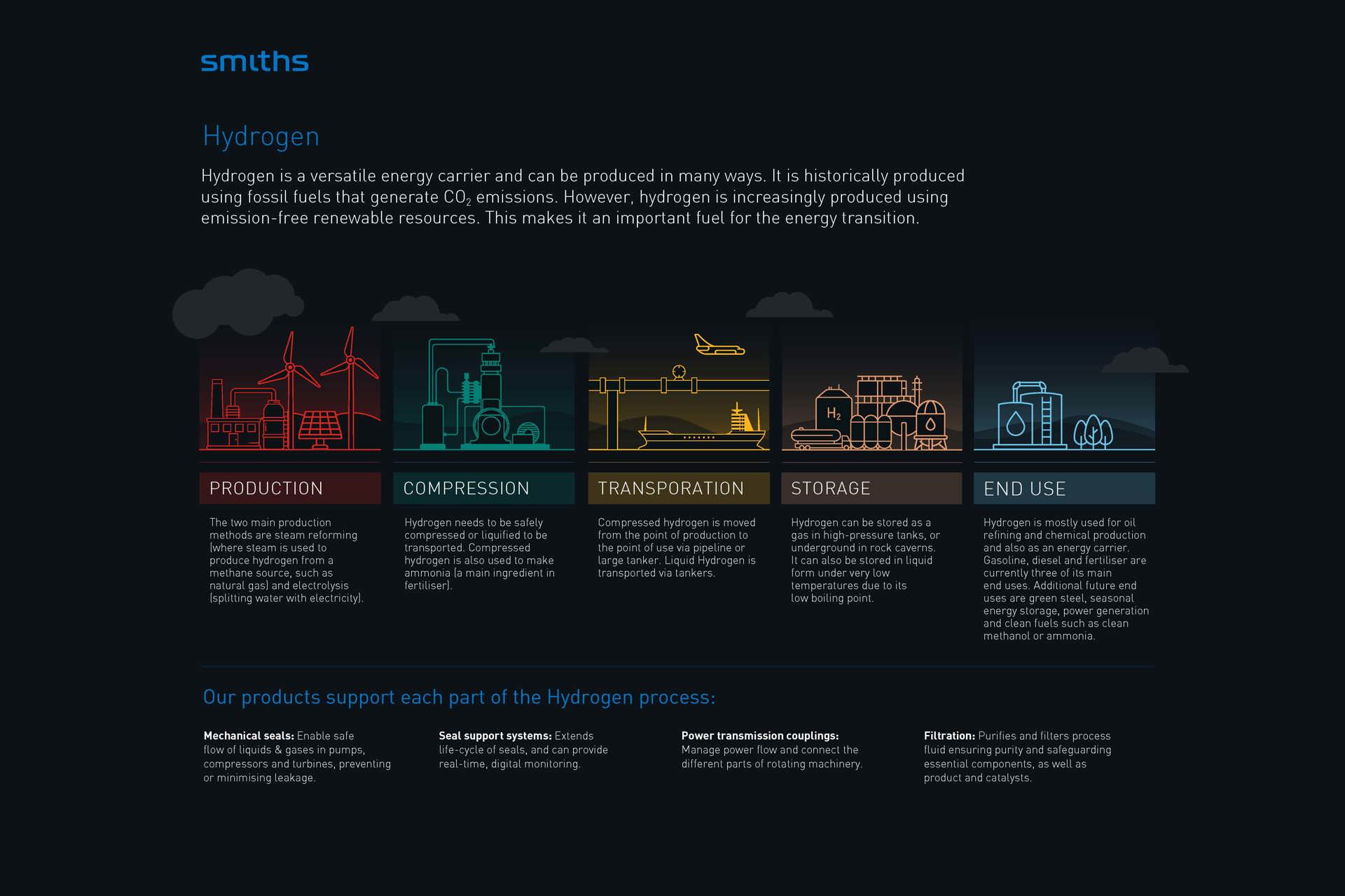 • Transportation: Both hydrogen and its derivatives typically reach their point of use via a pipeline or specialised tankers.